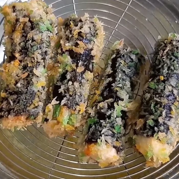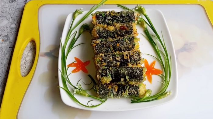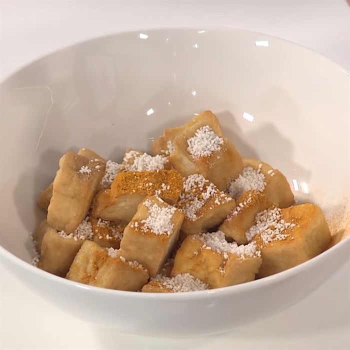 Nguyên liệu: Đậu hũ trắng, cà rốt, bông hẹ, rong biển, hạt nêm chay, bột chiên giòn, bột chiên xù, dầu ăn.
