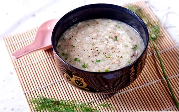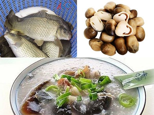 5. Cháo cá chép đậu xanh, nấm rơm, rau củ