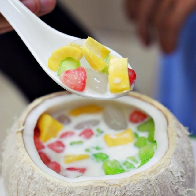 - Bước 5: Trộn hoa quả và viên bột, thêm đá và nước đường vào, khuấy đều trước khi thưởng thức.