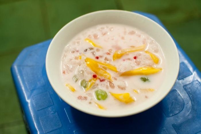 Chè xoài là một món mới lạ nhưng đã thu hút sự quan tâm của nhiều người ở Hà Nội. Món này có nguồn gốc từ Hồng Kông nhưng đã được biến tấu sáng tạo để phù hợp với khẩu vị người Việt. Chè được làm từ xoài chín vàng, kết hợp với thạch rất ngon miệng. Bạn có thể thưởng thức món này trên tuyến phố Hàng Than với giá từ 10.000 - 15.000 đồng/bát.