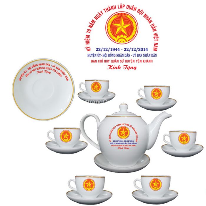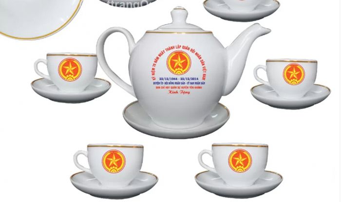 Bộ ấm chén không chỉ mang đến trải nghiệm thưởng trà đẳng cấp, mà còn là sự kết nối với truyền thống lâu dài. Chế tác từ những thương hiệu uy tín như Gốm sứ Minh Long, Bát Tràng, Minh Châu, mỗi chiếc ấm chén là một tác phẩm nghệ thuật độc đáo. Logo hay dòng chữ trên sản phẩm như là dấu ấn về ngày lễ quan trọng này.