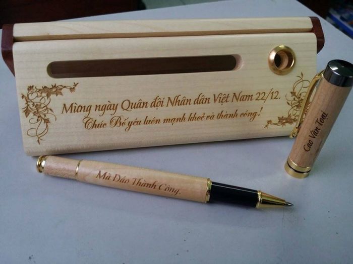 Quà tặng gỗ để bàn là lựa chọn ý nghĩa và độc đáo để tri ân cán bộ, chiến sĩ trong lĩnh vực An Ninh Quốc Phòng. Các sản phẩm như bút gỗ, tranh gỗ, hộp namecard gỗ, khung ảnh gỗ, đồng hồ gỗ khắc logo... được cá nhân hóa mang đến thông điệp sâu sắc và tri ân sâu sắc từ người tặng.