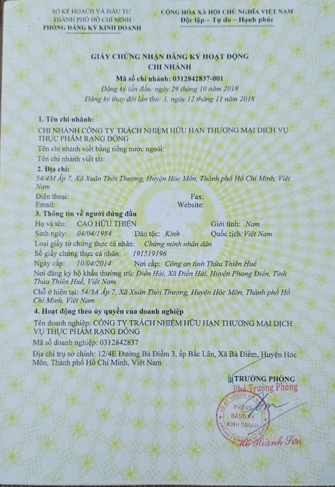 Thông tin khác: Chi nhánh 2: Vựa B9-28 Chợ Đầu Mối Nông Sản Thủ Đức, P. Tam Bình, TP. Thủ Đức, TP. Hồ Chí Minh.