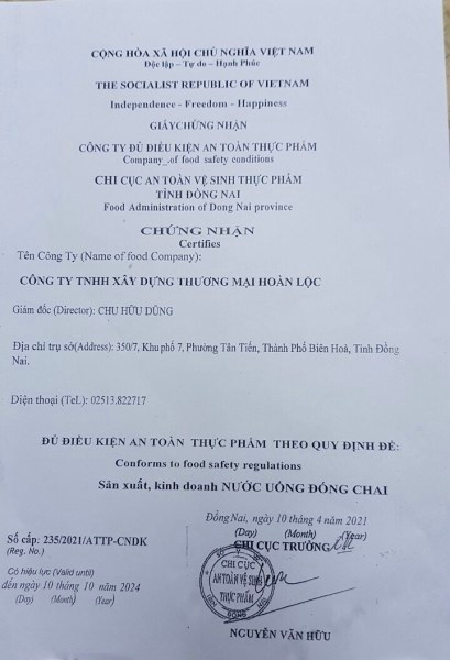 Nước sạch là nhu cầu thiết yếu của con người. Theo thống kê toàn cầu: ✍ Chỉ 4% nước trên trái đất là nước ngọt, và chỉ 0.5% trong số đó có thể sử dụng cho sinh hoạt. ✍ Hàng tỷ người không có khả năng tiếp cận nguồn nước sạch, và một nửa số giường bệnh liên quan đến các bệnh tật do nước gây ra. ➪ Chúng tôi, Công ty Nước Uống Tinh Khiết Hoàn Lộc, tự hào là đơn vị hàng đầu trong sản xuất và cung cấp nước tinh khiết đóng chai và đóng bình cho các cửa hàng, đại lý, và doanh nghiệp tại thị trường miền Nam. Chúng tôi cung cấp các sản phẩm nước đóng chai và đóng bình như: - Nước tinh khiết 330ml, 350ml, 500ml, 1000ml, 1500ml, nước tinh khiết Smile, nước khoáng tinh khiết,.. - Nước đóng bình 19L, 20L, nước đóng bình Smile,.. Chúng tôi cũng tư vấn, cung cấp và lắp đặt hệ thống lọc nước đạt tiêu chuẩn cho các cơ sở và công ty với giá cả hợp lý, sử dụng thiết bị và nguyên liệu chính hãng từ American. Đặc biệt, chúng tôi nhận gia công các loại chai từ 250ml đến 500ml với thương hiệu riêng cho các tập đoàn và doanh nghiệp, thiết kế nhãn hiệu, cung cấp vỏ chai và in ấn tem nhãn theo yêu cầu, cùng với dịch vụ vận chuyển tận nơi. Cam kết của chúng tôi bao gồm: ✔ Khai thác từ nguồn nước tự nhiên, công nghệ lọc hiện đại, đảm bảo tiêu chuẩn chất lượng ✔ Đạt chứng nhận an toàn thực phẩm ISO 9001:2000, ISO 9001:2008 ✔ Đa dạng thể tích, sản xuất theo thương hiệu riêng ✔ Giao hàng nhanh chóng và hỗ trợ 24/7 Nước Uống Tinh Khiết Hoàn Lộc - Tinh khiết hơn, sạch hơn cho sức khỏe của bạn!