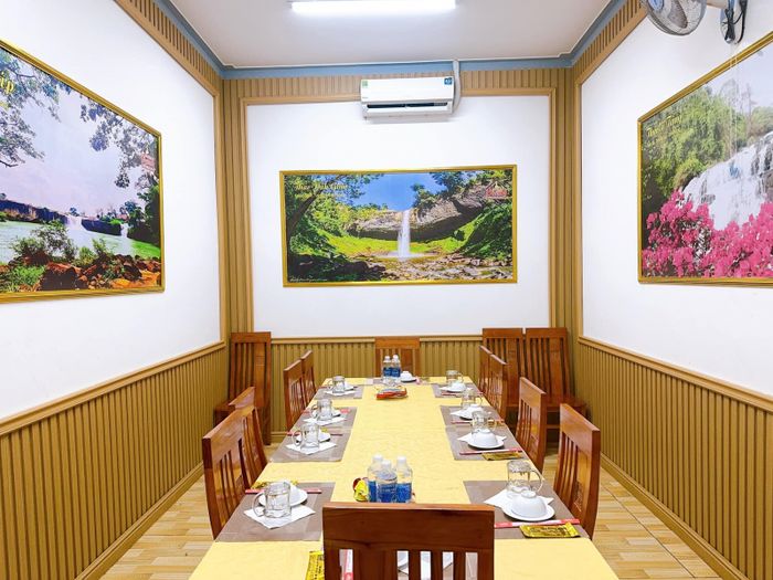 Ngoài ra, nhà hàng còn nổi tiếng với các món hải sản đặc sản như cá lăng sông, cá chình sông, mang đến sự đa dạng và phong phú cho thực đơn. Đặc biệt, bạn không nên bỏ qua các món đặc sản như bò phố núi và thịt heo rừng, được chế biến tinh tế, đem đến hương vị đậm đà của núi rừng.