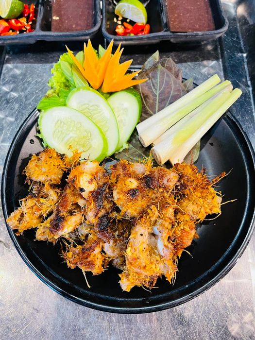 Điểm độc đáo của món ăn tại Tỏi Quán chính là sự kết hợp khéo léo của gia vị. Thịt bò được cắt thành từng miếng vừa ăn, gia vị thấm đều, mang đến hương vị đậm đà và màu sắc hấp dẫn. Nầm giòn sần sật, thịt mềm, khi nướng ăn kèm rau củ như khoai, đậu bắp, củ đậu. Nước sốt phổ biến nhất là nước sốt me chua ngọt, thêm vào khi nướng thịt bò, có thể ăn kèm bánh mì. Nếu bạn ưa thích ăn kèm rau, đây là sự kết hợp hoàn hảo, vị của rau hòa quyện với vị thịt, mang lại trải nghiệm ẩm thực độc đáo.