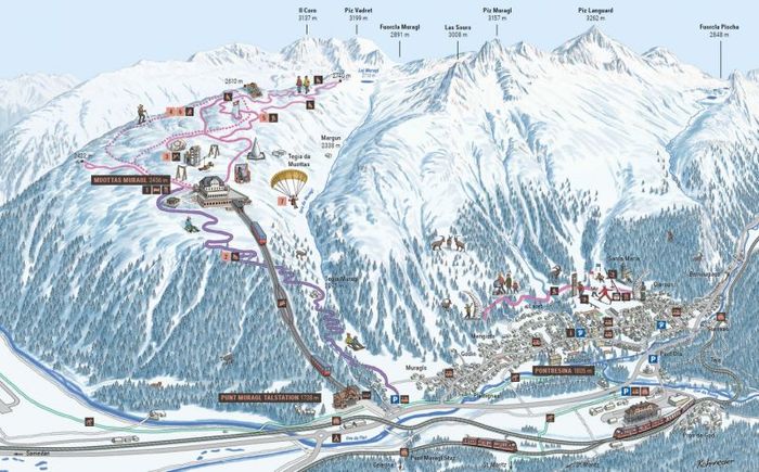 Một điểm nổi tiếng ở Thụy Sĩ là nhà nghỉ Sagantini, tọa lạc tại dãy núi Mouttas Muragl, St Moritz. Nhà vệ sinh ngoài trời ở đây được sơn màu giống cờ quốc gia Thụy Sĩ. Từ đây, du khách có thể ngắm nhìn cao nguyên Engadin và dãy núi Bernina trong lúc 'giải quyết nỗi buồn'.