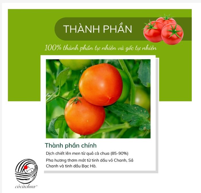 - Axit axetic lên men tự nhiên từ quả cà chua (95%), chất tạo đặc từ tinh bột biến tính.