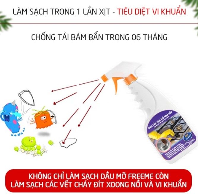 Nước lau bếp Freeme với công thức đặc biệt loại bỏ hoàn toàn dầu mỡ, vết cháy đen trên xoong chảo, bếp gas, bếp từ, nồi... sản phẩm nhập khẩu trực tiếp từ Hàn Quốc, khả năng khử khuẩn, đánh bay vi khuẩn gây hại trong nhà bếp. Công nghệ đột phá nóng chảy chất béo và tách chúng ra khỏi bề mặt, không ảnh hưởng tới thiết bị. Hướng dẫn sử dụng đơn giản, đặt hàng tại shopee.vn
