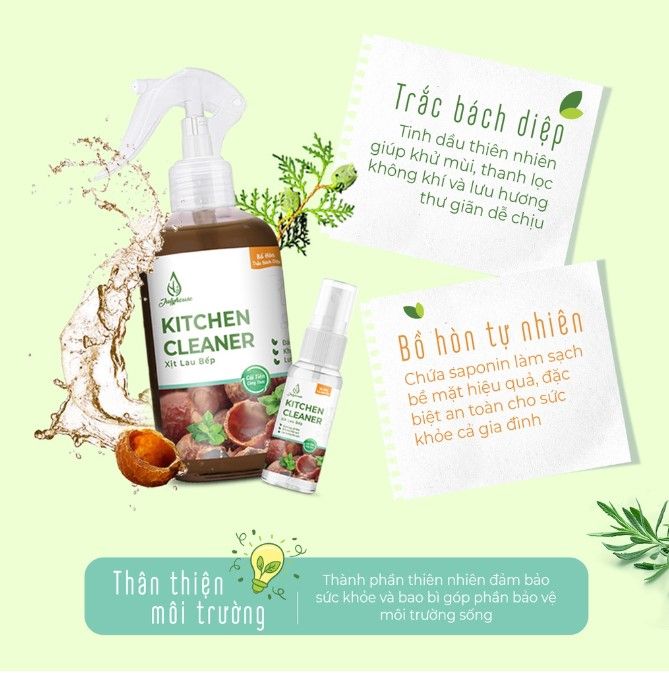 - Công thức chuyên dụng giúp lau sạch nhà bếp, thiết bị nhà bếp với thành phần thiên nhiên an toàn.