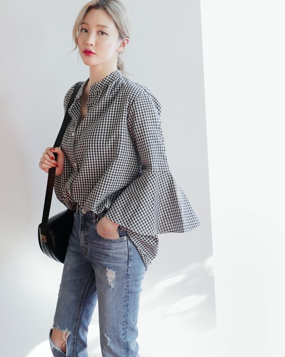 10. Kết Hợp Quần Jean với Áo Tay Bèo