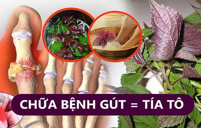 Lá tía tô, hay còn gọi là é tía, tử tô, xích tô, có tính ấm và vị cay. Hạt tía tô chứa nhiều dầu béo giúp giảm đau, chống viêm, giãn mạch, ngăn chặn nhiễm khuẩn, hỗ trợ chữa cơn gút cấp tính. Các chất chống oxy hóa, chống dị ứng, chống viêm trong lá tía tô giúp giảm triệu chứng của bệnh gout. Cách sử dụng lá tía tô có thể bao gồm: