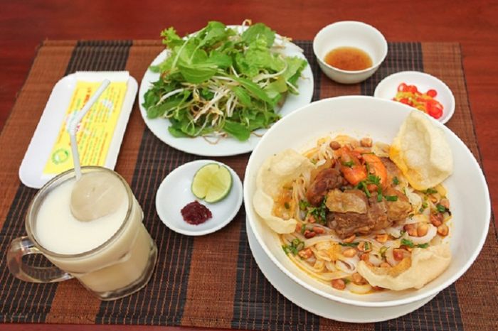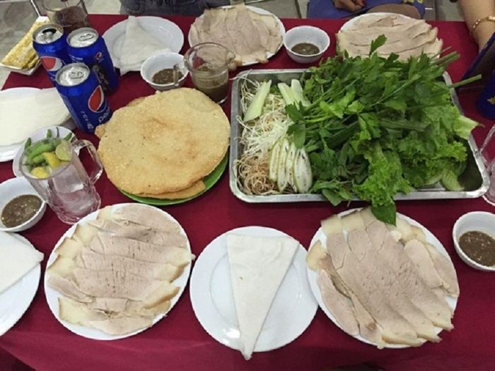 Mỳ Quảng ếch ở đây không chỉ ngon mà còn độc đáo. Phần ăn được bài trí trên mẹt tre với lá chuối, mỡ hành và đậu phộng, tạo hình thú vị. Thực khách sẽ cảm nhận hương vị đặc trưng khi ăn mỳ Quảng ếch tại đây. Quán còn kết hợp với xì dầu, tạo nên hương vị khác biệt.