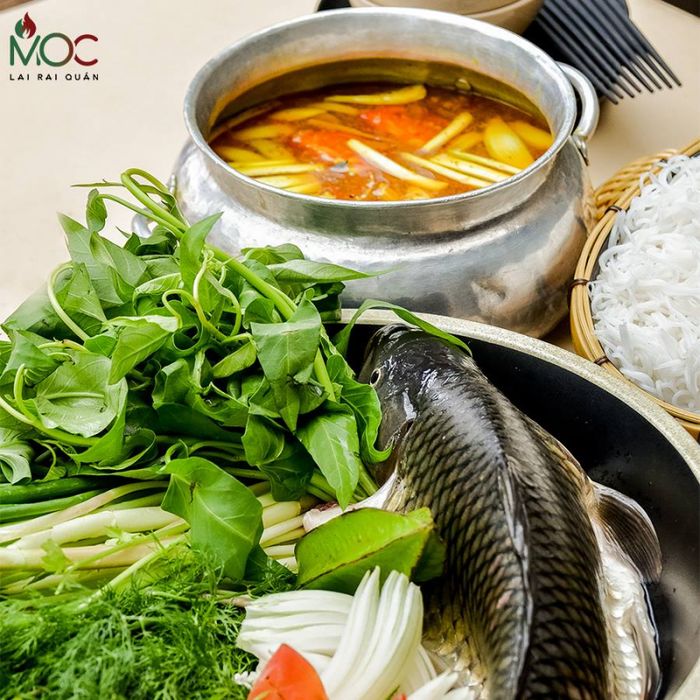 Từ những nguyên liệu gần gũi như bò, gà, heo cho đến hải sản, MOC Lai Rai Quán mang tới cho thực khách đủ những biến tấu đa dạng và đặc sắc của ẩm thực Việt trong mức giá dễ chịu. Có thể kể đến một vài cái tên như: Gà nướng than hoa, ốc nướng tiêu xanh Phú Quốc, mẹt đồng quê, tôm càng đút lò sốt trứng muối, dẻ sườn nướng, cá lăng nướng muối ớt, lẩu riêu cua bắp bò, ;ẩu riêu cá lăng, Rau rừng Gia Lai xào, Cơm rang sò điệp… toàn những món ăn hợp khẩu vị với tất cả mọi người, vừa được trẻ nhỏ, chị em phụ nữ yêu thích, vừa trở thành "mồi nhậu" khoái khẩu của cánh mày râu. Lẩu cá lăng ở đây được đánh giá là cá tươi, ngon. Nước lẩu đậm đà hợp khẩu vị với hầu hết tất cả người ăn.