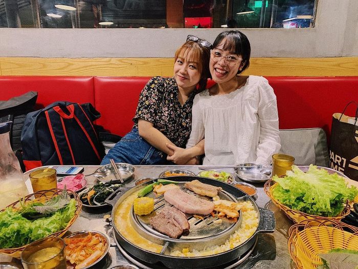 Nếu để ý thì bạn sẽ thấy bên ngoài vỉ nướng tại Buk Buk có 1 vành lõm nhỏ. Khi vỉ nóng, bạn sẽ cho hỗn hợp trứng lên đó nướng cùng với thịt. Đây là một điều khá thú vị mà mình chỉ được trông thấy khi đến Buk Buk. Quán cũng có đặt line nước chấm và panchan tự phục vụ nữa nhé!