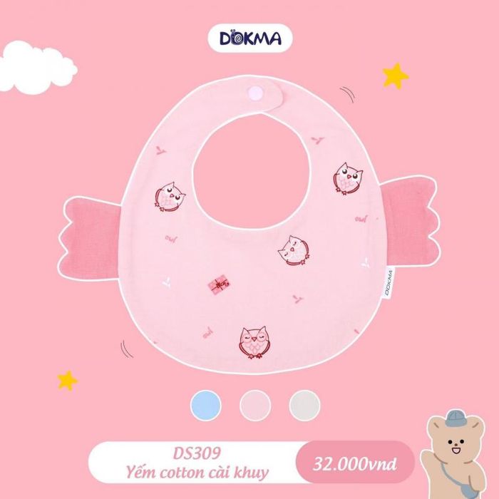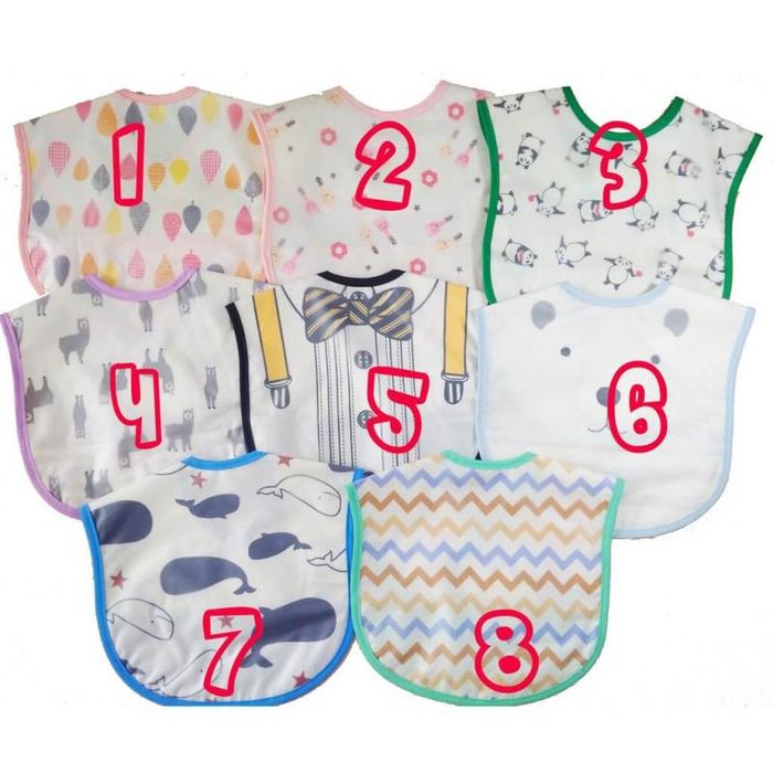 The bibs sold at Mother and Baby Doremi are made of cotton fabric, breathable, and colorfast. They are extremely durable, comfortable, and pleasant for babies to wear. Besides, they keep the baby clean after every meal. Isn't that wonderful, moms? The bib is designed with a waterproof layer on the front. Furthermore, the bib has many cute and adorable patterns, making it more enjoyable.