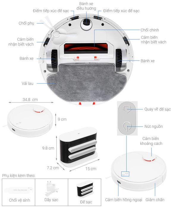 - Hài lòng với tính năng hút bụi sạch, tự động giặt giẻ
