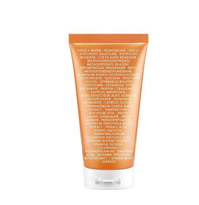 - Nước (Water, Eau), Dicaprylyl Carbonate, Methylene Bis-Benzotriazolyl Tetramethylbutylphenol[Nano], Butyl Methoxydibenzoylmethane, Ethylhexyl Triazone, Nylon-12, C20-22 Alkyl Phosphate, Glycerin, C20-22 Alcohols, Decyl Glucoside, Butylene Glycol, Dimethicone, Xanthan Gum, và nhiều thành phần khác.
