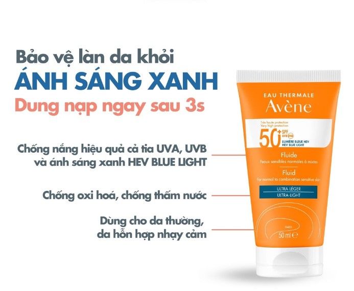 Không chỉ tác động của ánh sáng mặt trời, mà ngay cả ánh sáng xanh từ các thiết bị điện tử như máy tính, laptop, điện thoại thông minh cũng có thể gây tổn thương cho da, làm da trở nên đen sạm, xỉn màu và già hóa. Vì vậy, kem chống nắng toàn diện đa phổ Avène Protection Fluid 50+ Blue Light là sự lựa chọn hoàn hảo giúp bảo vệ da mỗi ngày, trong mọi điều kiện thời tiết.