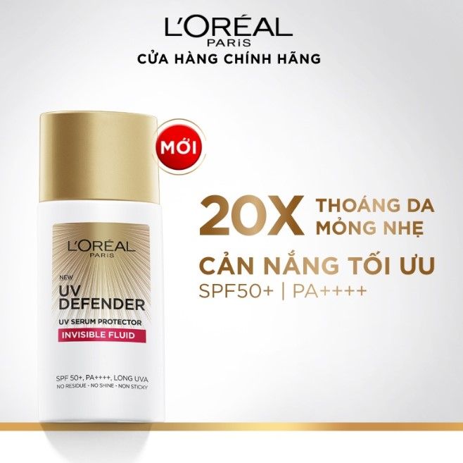 Kem chống nắng L'Oreal Paris UV Defender Serum SPF 50++ là sự lựa chọn hàng đầu của phụ nữ Việt. Kem mỏng nhẹ, không bết dính, chống nắng mạnh mẽ với 2 lớp màng bảo vệ (Mexoryl SX và Mexorul XL) chống tia UVA và UVB suốt cả ngày. Chứa Niacinamide giúp bảo vệ da, nâng tone, giảm thâm dưỡng trắng, khiến kem này trở nên phổ biến hơn bao giờ hết.