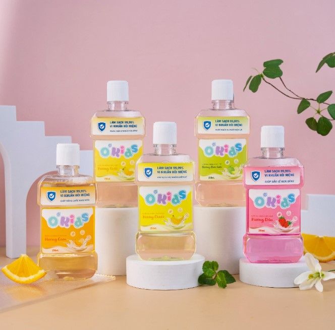 Với bộ sưu tập 5 mùi hương từ trái cây: Cam, xoài, dâu, chuối và dưa lưới, nước súc miệng trẻ em O'Kids giúp bảo vệ răng miệng hiệu quả, loại bỏ mảng bám chỉ sau 30s, ngăn ngừa các bệnh lý về răng cho trẻ.