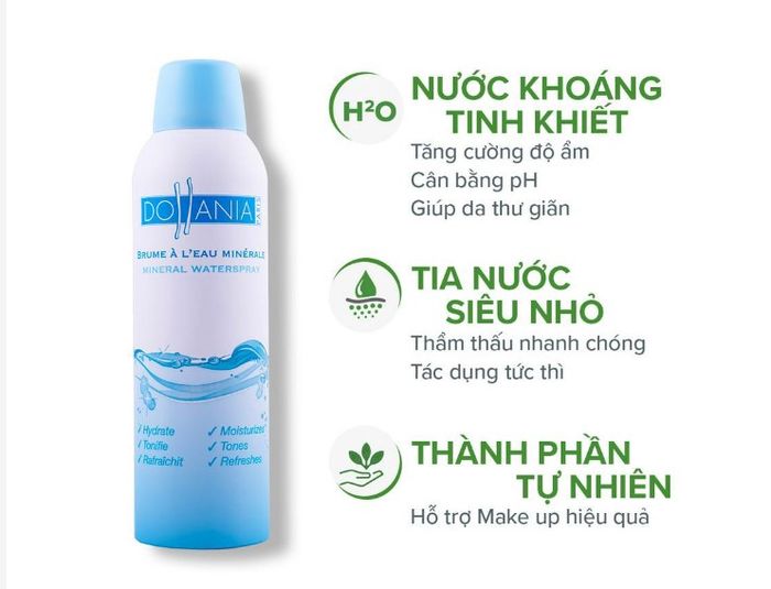 - - Xịt Khoáng Dưỡng Ẩm Dollania cung cấp nước và khoáng chất, giữ cho da tươi tắn và bảo vệ lớp trang điểm.