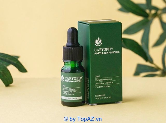 Caryophy, thương hiệu nổi tiếng từ Hàn Quốc, cung cấp nhiều sản phẩm làm đẹp như kem dưỡng ẩm, toner, serum, và sữa rửa mặt. Trong đó, Caryophy Portulaca Ampoule là serum trị mụn được yêu thích.