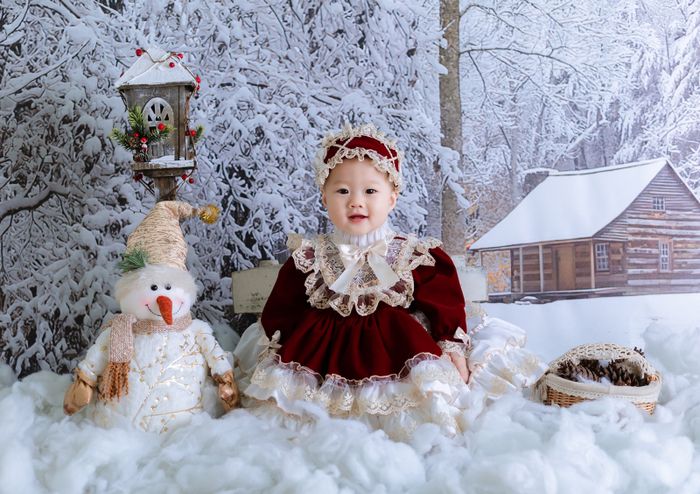 - Bé được chụp trong 3 bối cảnh khác nhau, bố mẹ có thể chọn bối cảnh ưa thích tại Hạnh Phúc Bé Yêu Studio và thậm chí có thể chụp chung với con.