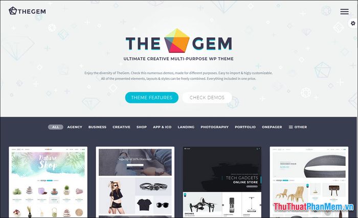 Trong số các theme bán hàng, TheGem thực sự nổi bật. Bạn hãy sẵn lòng gặp nó một vài lần khi tìm kiếm.