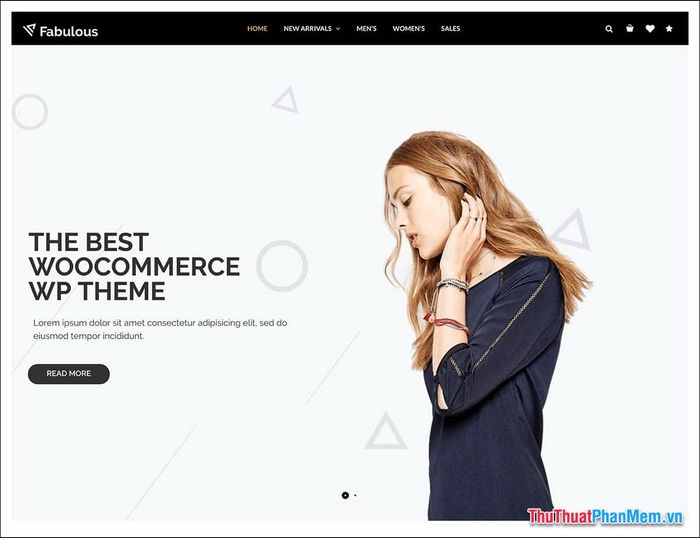 Duyệt qua bản demo của giao diện này, bạn sẽ thấy ngay sự tinh tế trong việc bố trí, với menu trên đầu và các sản phẩm đặt ở vị trí phù hợp.