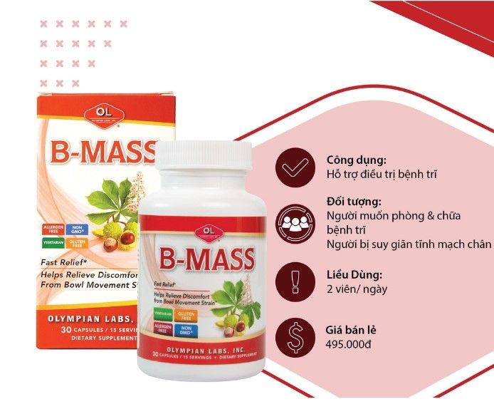 Mối lo âu với căn bệnh “trĩ” thường làm suy giảm chất lượng cuộc sống. Đừng để cảm giác đau rát, ngứa ngáy và khó chịu làm bạn mất ngủ. Hãy chọn viên hỗ trợ điều trị trĩ B-Mass, sản phẩm của thương hiệu nổi tiếng Olympian Labs từ Mỹ. Với những thành phần tự nhiên, B-Mass cam kết mang lại sự an toàn và hiệu quả cho người sử dụng.