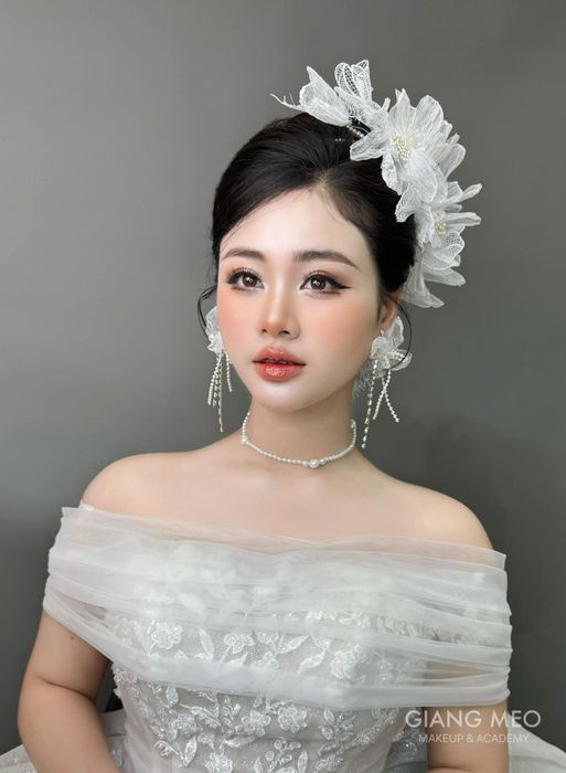 GiangMeo Makeup & Academy đưa bạn trở thành nàng công chúa trong ngày cưới với tone makeup trong trẻo và tone nền bóng mượt. Kết hợp với kiểu tóc bồng bềnh và phụ kiện lấp lánh, cô dâu sẽ toả sáng và cuốn hút mọi ánh nhìn.