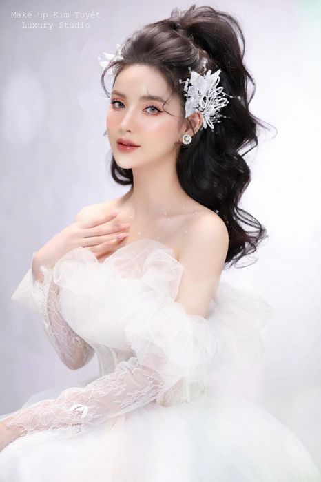 Hướng tới lối trang điểm trẻ trung, nhẹ nhàng, tinh tế mà vẫn không kém phần quyến rũ, xinh đẹp, những cô dâu được trang điểm viên Kim Tuyết chăm sóc đều cảm thấy tự tin bởi vẻ đẹp rạng ngời và vô cùng nổi bật. Với lớp phấn nền nhẹ nhàng hay lớp kem dưỡng ẩm có nhũ sẽ giúp cô dâu che đi được những khuyết điểm trên gương mặt mình. Cộng thêm chút má hồng như khiến làn da thêm khỏe mạnh và căng tràn sức sống mà không có cảm giác như đắp cả tấn phần lên mặt.