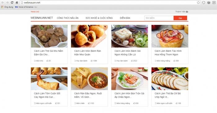 Nếu những trang web trước đó thường thuộc về các đầu bếp cá nhân, những người nổi tiếng tại gia, thì webnauan.net lại là sáng tạo của cả một cộng đồng yêu nấu ăn. Thiết kế của trang web được chia thành 3 phần chính: Công thức (được tổ chức theo các chủ đề như món luộc, món xào, món chiên, món kho...), Sức khỏe & Cuộc sống (thông tin cập nhật liên quan đến ảnh hưởng của thực phẩm đối với sức khỏe) và Diễn đàn (nơi chia sẻ những kinh nghiệm sống). Bạn không chỉ tìm thấy các công thức làm món ăn Việt Nam, mà còn có cơ hội khám phá văn hóa ẩm thực của nhiều quốc gia khác nhau.