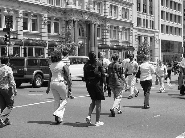 Một phụ nữ bước lên xe buýt với dáng vẻ mệt mỏi. Ngay lúc đó, người đàn ông có tuổi đang ngồi ở ghế gần đấy đứng dậy. Cô này ấn vai ông ta xuống và nói: