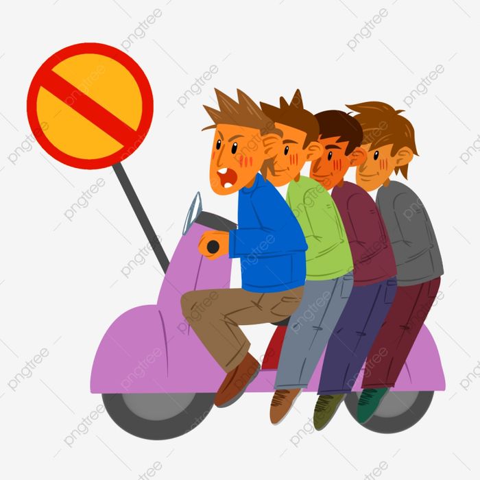 Một nhóm học sinh đi chung trên một chiếc xe máy, đang chạy xe trên đường thì bị cảnh sát thổi, cả nhóm dừng lại.