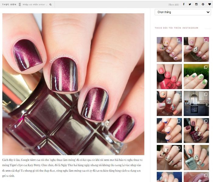 Blog Fashion Polish của Sam sẽ hướng dẫn bạn biến móng tay thành tác phẩm nghệ thuật tuyệt vời và cung cấp thêm thông tin về quy trình làm móng. Bên cạnh hướng dẫn vẽ móng, Fashion Polish cũng chia sẻ những mẹo và thủ thuật chăm sóc móng hữu ích. Hàng tuần, blogger tên Sam đăng bài về các chủ đề liên quan đến móng, từ đánh giá các mẫu móng nổi tiếng đến cập nhật xu hướng làm móng hiện đại.