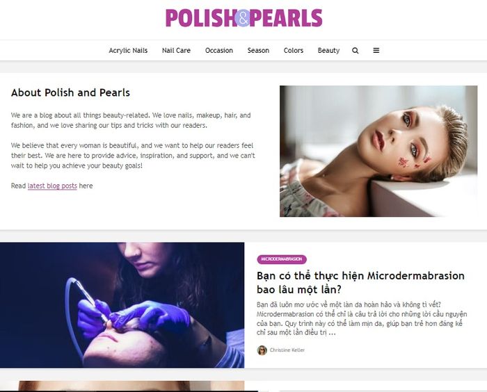 Polish & Pearls là một blog tập trung vào làm đẹp, bao gồm móng tay, trang điểm, tóc và thời trang. Trang web chia sẻ mẹo và thủ thuật với độc giả. Polish & Pearls mang đến hướng dẫn từng bước về nghệ thuật móng tay cho cả người mới và chuyên nghiệp. Được thành lập bởi Jenny Fox, người đam mê mẹo làm đẹp, thời trang và muốn làm đẹp.
