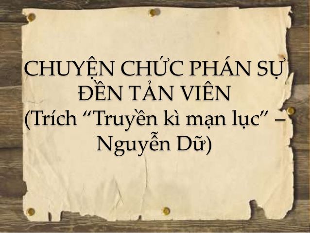 Ngô Tử Văn, nhân vật chính trong truyền kỳ mạn lục, là người cương trực, kiên định. Trong làng, có ngôi đền bị giặc phương Bắc làm oan trái, Tử Văn quyết định đốt đền để trừ trừng cho dân làng. Mặc dù mọi người khuyên can, nhưng chàng không chùn bước. Sau sự việc, Tử Văn gặp Thổ thần, được hướng dẫn tố cáo giặc trước Diêm Vương.