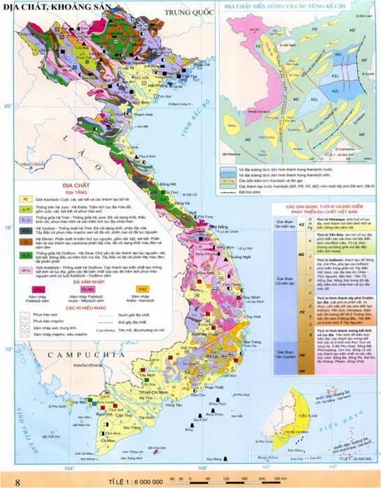 Việt Nam hình chữ S, giữa Lào, Campuchia, Trung Quốc và biển Đông. Quần đảo Hoàng Sa và Trường Sa nổi bật trên vùng biển nước ta.