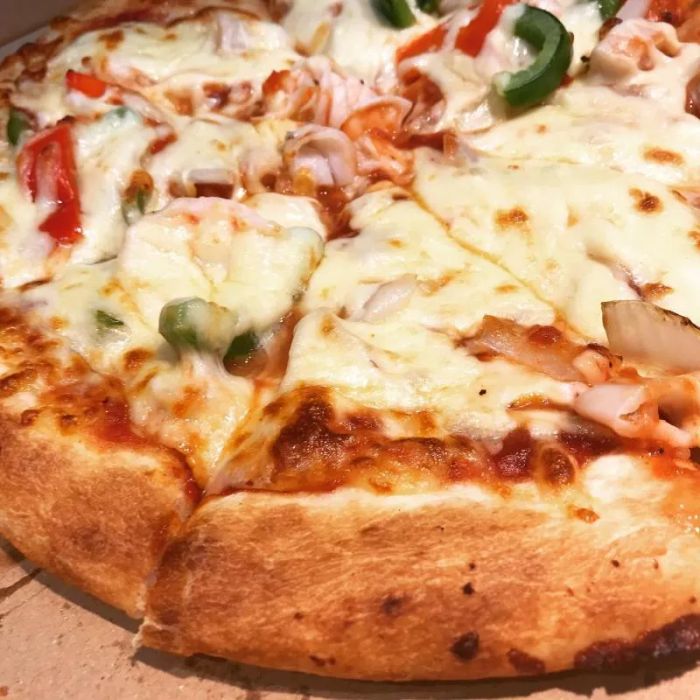 Pizza Inn is a well-known name among Saigon diners. The brand’s strength lies in its cheese, setting it apart in a crowded market. Pizza Inn features a thin, crispy dough that is airy and light, with three size options: small, medium, and large. Famous for its rich, indulgent cheese pizza, Pizza Inn stands out for its super creamy cheese flavor, offering a unique experience compared to other pizza options. The crust’s crispy, airy texture complements the distinctive cheese flavor perfectly.
