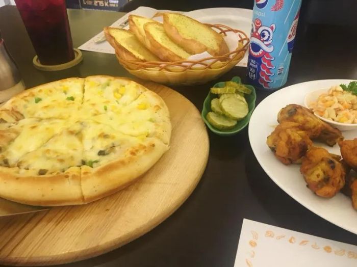 This pizza also offers peace of mind for diners, as its ingredients are healthy and nutritious. The staff is attentive, service is fast and friendly, the menu offers a wide variety of food choices, and the restaurant’s décor is simple, cozy, and inviting. Picking up a slice of pizza, customers can feel the soft, chewy texture of the crust, with long strands of cheese stretching and blending with the toppings—delicious without being overwhelming. Many customers opt for combo deals that are both tasty and budget-friendly.