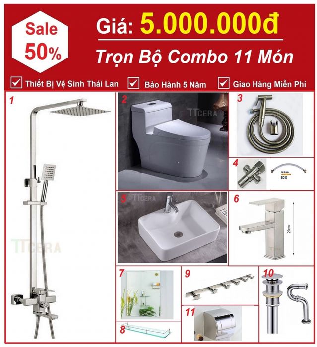 - Combo Nhà Vệ Sinh Trọn Bộ 11 Món giá 5 Triệu
