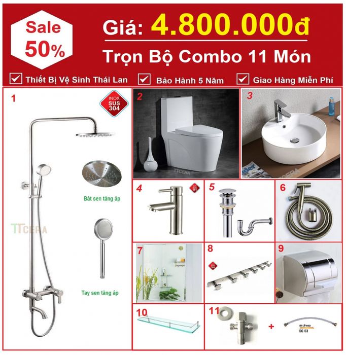 - Combo Nhà Vệ Sinh Trọn Bộ 11 Món giá 4.8 Triệu