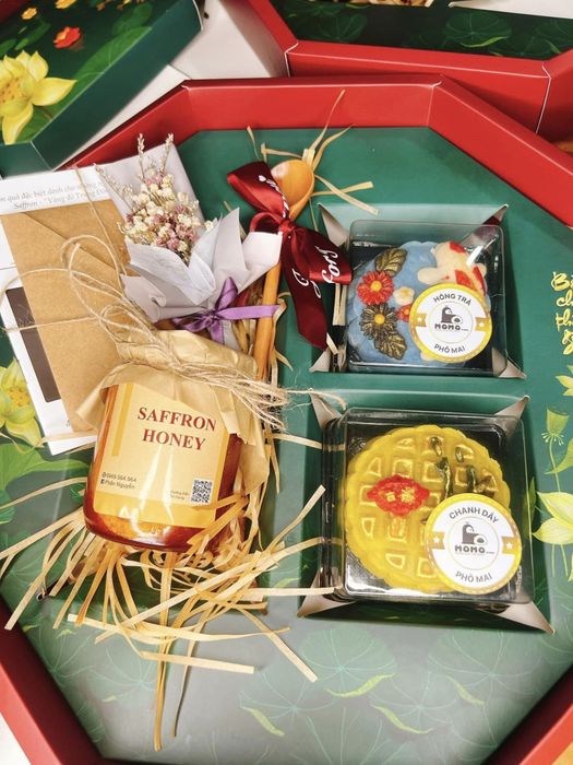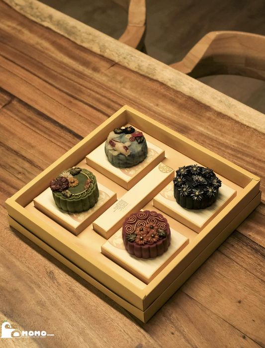 Momo Kitchen mang đến các loại bánh Trung thu hiện đại như Matcha Lava, Hazelnut Ngũ hạt phô mai, Chanh dây phô mai, Phúc bồn tử phô mai, Tiramisu phô mai, Hồng trà kem cheese, Sữa dừa trứng muối, Sầu riêng trứng muối, Thập cẩm Jambon xá xíu 1 trứng muối, Thập cẩm hải sản X.O 1 trứng muối. Mỗi chiếc bánh thơm ngon, được đóng gói đẹp mắt, giá 95.000 nghìn/ bánh 150 gram. Ngoài bánh lẻ, bạn cũng có thể mua bánh theo set 4 vị tự chọn với tên gọi Set Thỏ Ngọc Hoàng Kim giá 400.000 nghìn (đã bao gồm hộp). Để Momo Kitchen chuẩn bị bánh một cách chu đáo, chỉnh chu nhất, hãy đặt hàng trước 1 ngày nhé.