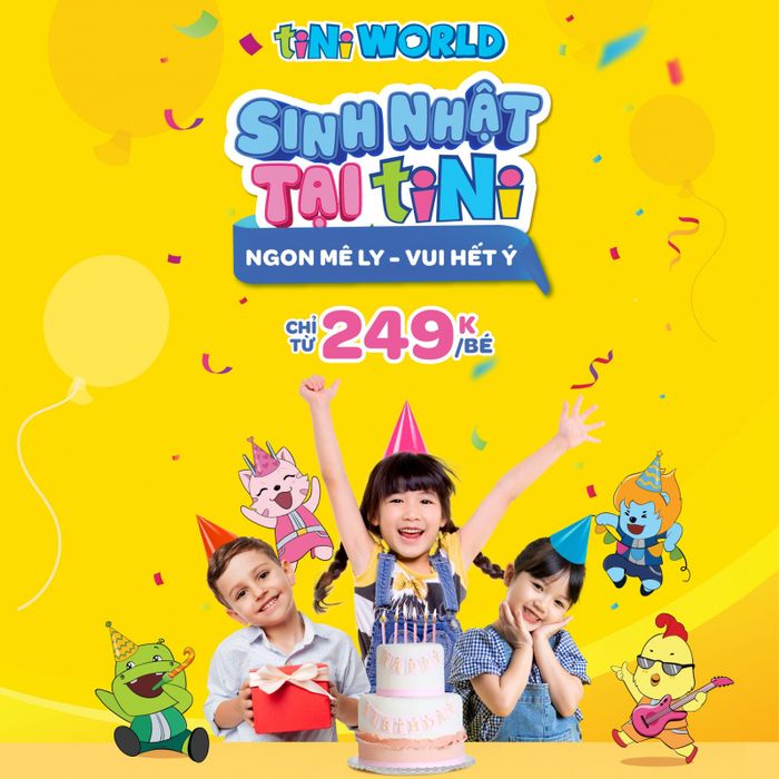 Miền đất vui chơi tiNi World tỏa sáng, nơi an toàn và tuyệt vời dành cho các bé. Với đủ loại hình trò chơi đa dạng và mạng lưới trung tâm trải rộng khắp cả nước, tiNi World là sự lựa chọn hàng đầu cho tổ chức tiệc sinh nhật cho các bé. Bên cạnh bữa tiệc sinh nhật với chủ đề độc đáo, các bé còn được tham gia vào những trò chơi hấp dẫn. Sảnh tiệc rộng lớn không chỉ có bàn tiệc đẹp mắt mà còn có sân khấu cho các bé biểu diễn và giải trí, trong khi các bậc phụ huynh có thể thoải mái trò chuyện.