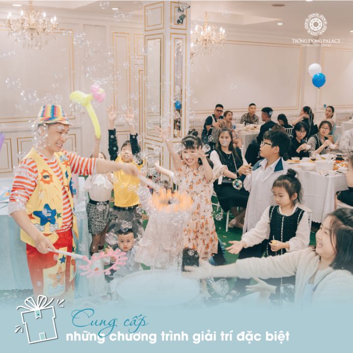Đại Lý Tổ Chức Sự Kiện & Tiệc Cưới CTM Palace là một trong những địa điểm được nhiều gia đình chọn để tổ chức tiệc sinh nhật cho con. Trung tâm này sở hữu bốn tầng với bốn không gian được bài trí bằng các tông màu chủ đạo khác nhau, tạo nên không gian phù hợp nhất. Sảnh tiệc, khu chụp hình backdrop hoành tráng đều được CTM Palace đầu tư và thiết kế sang trọng, hiện đại để lưu giữ những kỷ niệm đẹp nhất của gia đình.