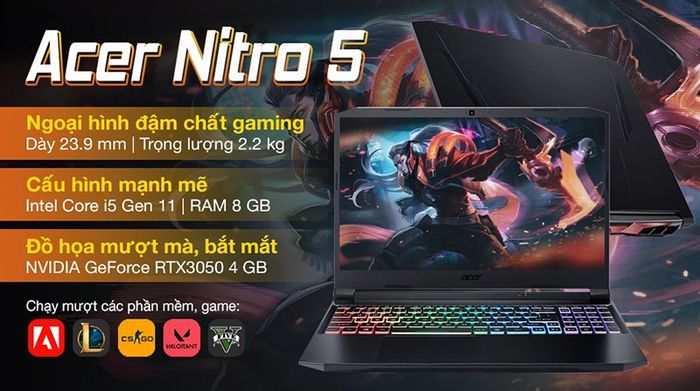 Dòng laptop Nitro 5 của Acer xuất hiện với tên gọi Acer Nitro 5 AN515 57 51G6 i5, sở hữu cấu hình mạnh mẽ để chơi mọi thể loại game, kể cả các tựa game AAA nặng ký.