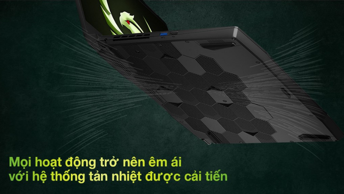Điều này không chỉ nhờ vào hệ thống tản nhiệt tân tiến mà còn nhờ vào khả năng giảm thiểu nhiệt độ, giữ cho laptop luôn mát mẻ, điều mà các game thủ đặc biệt yêu thích.