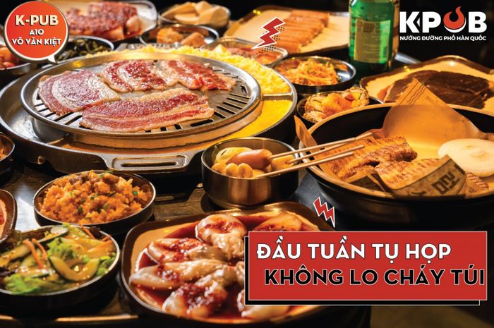 Thưởng thức thịt nướng đường phố Hàn Quốc tại K-Pub - địa điểm phong cách và ngon miệng. Với không gian sáng đèn thâu đêm, K-Pub mang đến trải nghiệm ẩm thực đậm chất Hàn Quốc. Quán nổi tiếng với set thịt tươi ngon, nước sốt hấp dẫn. Bạn có thể lựa chọn buffet hoặc gọi món theo khẩu phần. Đặc biệt, K-Pub nổi bật với bàn nướng độc đáo, chứa phô mai, trứng và thịt, tạo nên hương vị đặc trưng. Đến K-Pub để thưởng thức món ngon và trải nghiệm không khí năng động của đường phố Hàn Quốc.